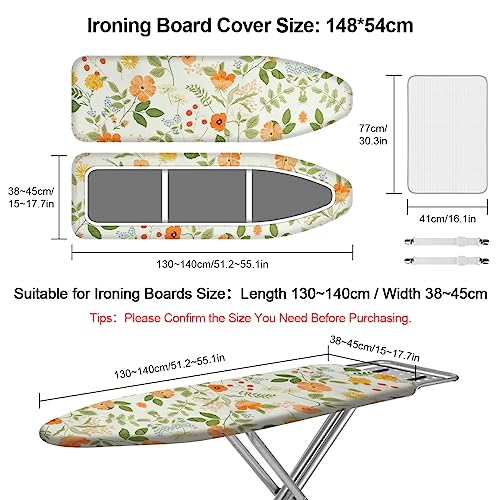 Philorn Copriasse da Stiro Cotone 120x40 cm con Funzione di riflessione del Calore e Stiratura Rapida, Dotata di Rete ed Elastico, Assi da Stiro 38-45 cm x 130-140 cm, Margherite Verdi