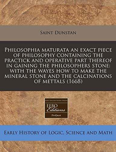 Philosophia Maturata an Exact Piece of Philosophy Containing the Practick and Operative Part Thereof in Gaining the Philosophers Stone: With the Wayes ... Stone and the Calcinations of Mettals (1668)