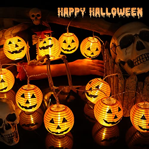 Halloween Zucca Luci Stringa: questa Halloween lanterna è di 2,5 m in totale con 10 bianco caldo LEDs(ogni LED è dotato di una lanterna arancione). Disegni di zucca unici e realistici ti daranno un'atmosfera spettrale di Halloween quando decori interni, casa, finestre, esterni, portico, giardino, cortile, ecc.