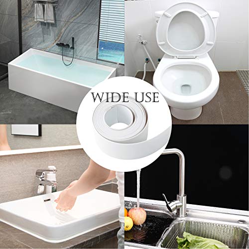 PHINGEER - Striscia di tenuta per bagno, autoadesiva, impermeabile, con strumento di installazione, nastro sigillante non ammuffito per cucina, bagno, vasca, WC (bianco, 320 cm x 3,8 cm)