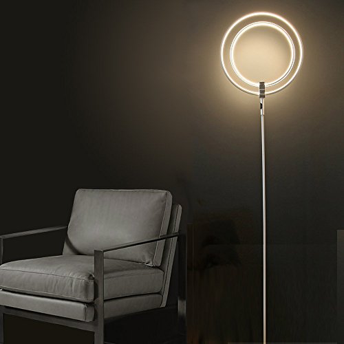 PHIVE Lampada da terra, Dimmerabile Super Bright 28W LED Luci in Piedi, Anelli Regolabili, Luce Bianca Calda, Anelli di Luce Portano l'atmosfera Sci-fi a Spazi Contemporanei - Argento