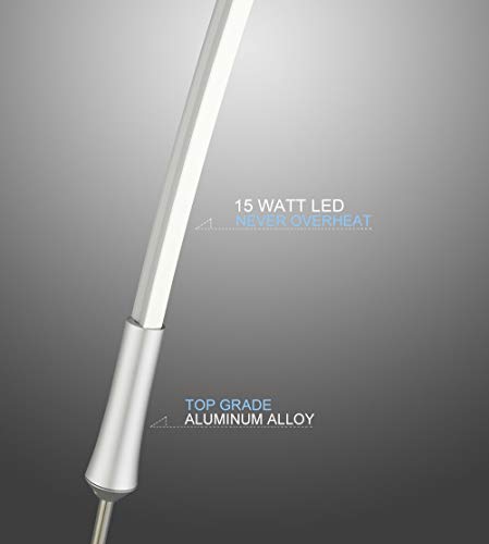 PHIVE Lampada da terra ad arco, moderna lampada a stelo a LED -design minimalista e contemporaneo - altezza: 180 cm, 15 Watt, 1500 Lumen, luce bianca calda 3000 Kelvin -lampada da soggiorno, lampada da lettura, lampada a stelo a LED -argento