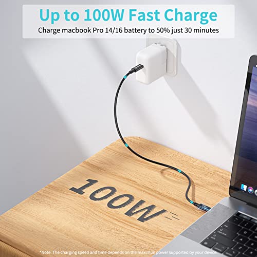 ⚡【Ricarica rapida da 100 W】 Cavo PHIXERO USB C compatibile con USB4, supporta il protocollo di ricarica rapida PD3.0, la potenza massima può raggiungere 100 W (20 V/5 A), può caricare computer portatile al 50% in 30 minuti. appositamente progettato per caricare computer con porta USB C, è molto adatto per la ricarica di laptop 3/4 fulmine (* Nota: la potenza di ricarica dipende dal limite superiore del dispositivo host)