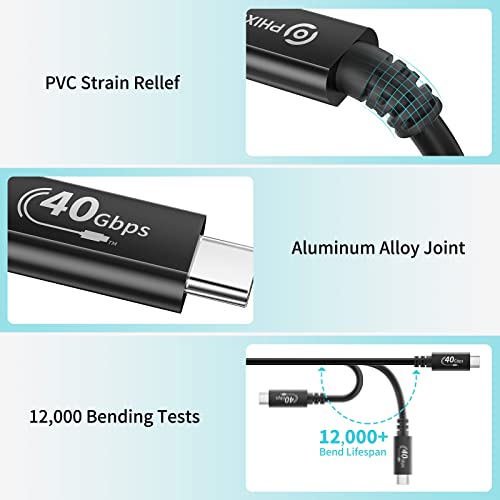 ⚡ 【Velocità di trasferimento 40 Gbps】 Il cavo PHIXERO USB 4.0 è compatibile con il cavo Thunderbolt 3 e il cavo Thunderbolt 4, con una velocità di trasferimento fino a 40 Gbps, consentendo di trasferire file da 2,7 G da un disco rigido mobile a un laptop entro 1 secondo. Collegando una eGPU, la capacità del laptop di elaborare le immagini è notevolmente migliorata (*Nota: questo vale solo per i dispositivi che supportano 40 Gbps)