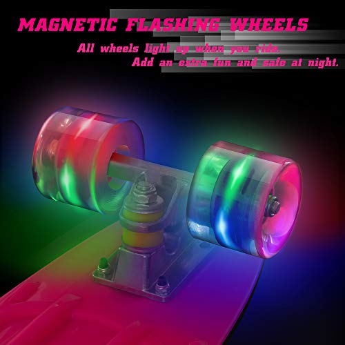 PHNHOLUN Skateboards Mini Cruiser Retro Skateboard, Skateboard in Plastica Completo Penny Board 22 pollici per principianti Adolescenti Adulti, Ruote Luminose a LED con Attrezzo a T All-in-One