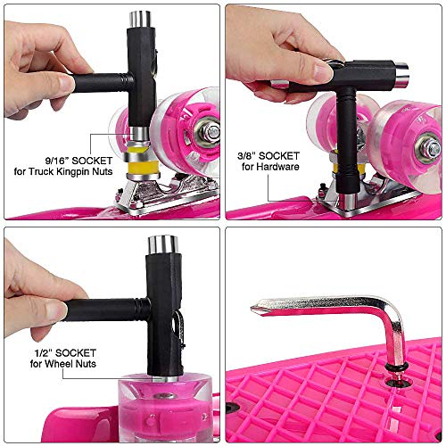 Prestazioni eccellenti: il skateboard è realizzato in polipropilene, robusto e resistente, supporta piloti fino a 100 kg. La tavola da skate cruiser è dotata di camion in alluminio spesso 8,3 cm per la massima velocità e controllo. Kick tail per un maggiore controllo durante la guida, perfetto per varie manovre. Superficie antiscivolo per una maggiore sicurezza.
