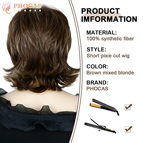 PHOCAS Brown Mullet Parrucca Shaggy Layered Parrucca Fluffy 80s Rocker Parrucca per le Donne Marrone Curly Parrucca Resistente al calore Cosplay Halloween Costume Parrucche di Ricambio Capelli