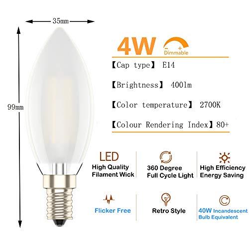 Phoenix-Lampadine LED E14 Filamento Luce Bianca Calda(2700K),Dimmerabile,4W Equivalenti a 40W,400lm (Pacco da 2)