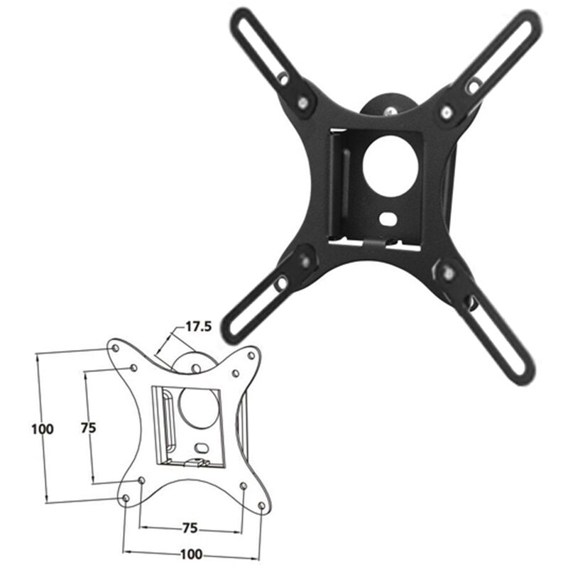 Facile installazione. supporta fino a 25 kg. vesa: 75x75 - 100x100. con l'accessorio incluso fino a max 200x200mm. fino a 42 (misura approssimativa). distanza dalla parete 1 -75 cm. colore nero. peso: 0 -369 kg. dimensioni dell'imballaggio: 12 -3 x12 -20 x 2 -50cm.