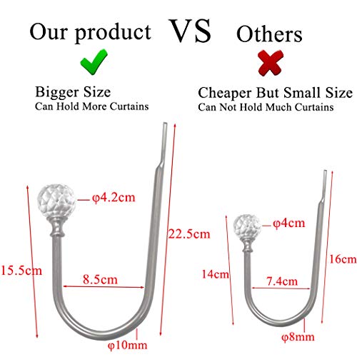 PHOEWON Fermacavi per tende in metallo acrilico a forma di U, ganci per tende da parete, confezione da 2