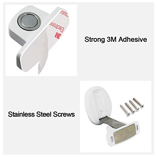 PHOEWON Fermaporta magnetico in metallo, resistente, con viti autoadesive 3M, montaggio a pavimento (2 pezzi, White)