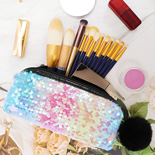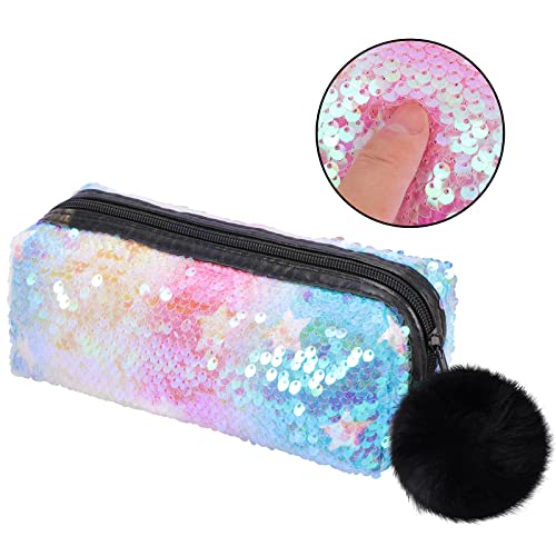 PHOGARY Custodia per Matite Preppy a Paillettes per Ragazze, Borsa Porta Pennelli Cerniera Pelosa, Astuccio per Matite Olografico, Glitterato, Borsa Trucco Scintillante per la Scuola (Arcobaleno)