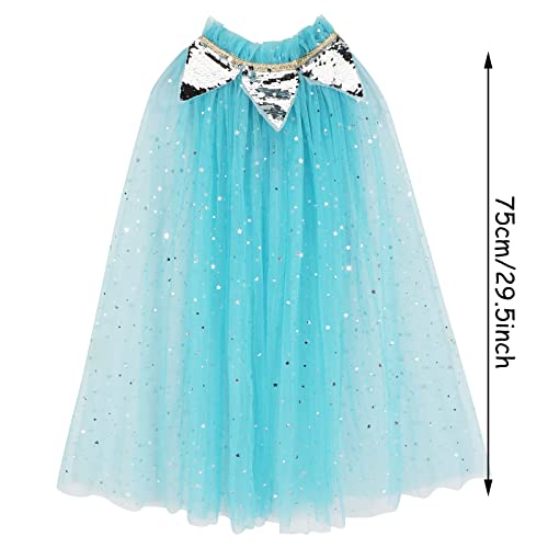 PHOGARY Mantello Principessa Bambina, Mantello Della Principessa Accessorio Accessorio Scialle Cape Ragazze da Carnevale Principessa Cosplay Costume Travestimento Compleanno Halloween Feste (Blu, L)