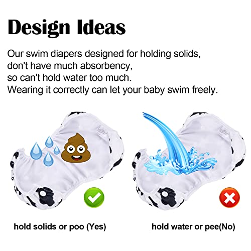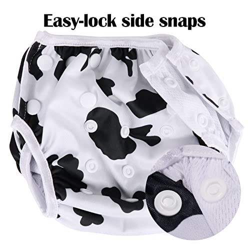 PHOGARY pannolino da bagno per bambini (0-3 anni cose per bambini), 2 PZ. Costume da bagno riutilizzabile per costume da bagno per bambini da 3 a 10 kg, Stampa di mucca + Cuore