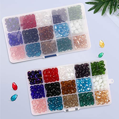 PHOGARY Perline di Vetro 300pcs, Perline di Cristallo a Goccia Forma Waterdrop 8 * 12mm per la Realizzazione di Gioielli