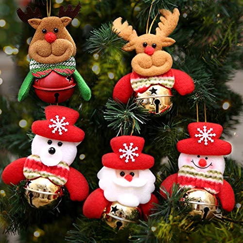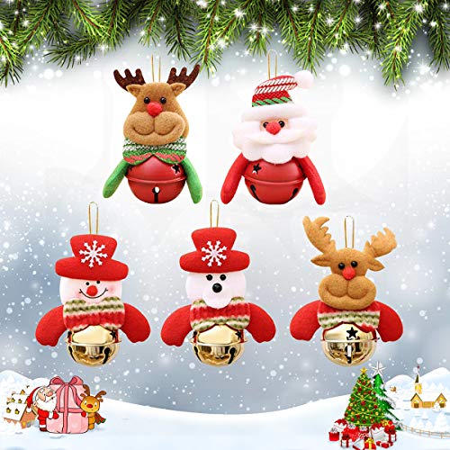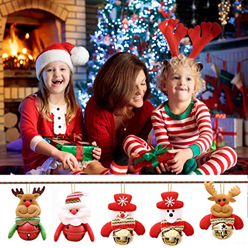 PHOGARY 10 Pezzi Campane di Natale, Campane sospese con Cordino per Campane di Albero di Natale e Porta, Pupazzo di Neve/Babbo Natale/Orso/Alce d'oro