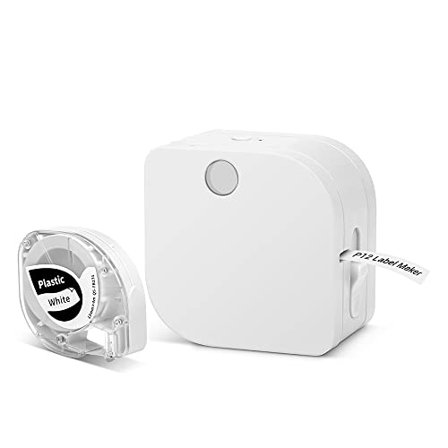 Phomemo P12 Mini Etichettatrice Bluetooth, Stampante Etichette Adesive con nastro, Label Maker per Stoffe e Nastri Satinati, per La Casa e Cucina-Bianco