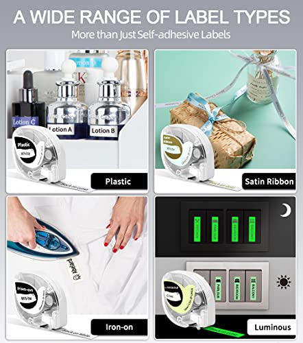 【Stampa su nastri di etichette P12】 Questa Bluetooth Stampante Termica Etichette stampa sui nastri adesivi P12, disponibili in una vasta gamma di colori e materiali. Non solo sono presenti carta per etichette autoadesive e etichette in plastica in vari colori, ma anche nastrini decorativi e etichette per tessuti da stirare per i vestiti.