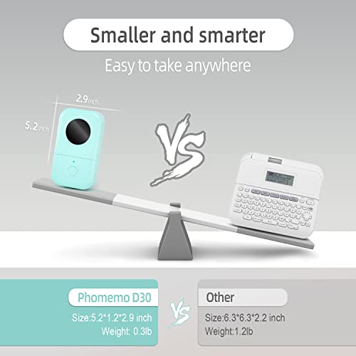 Phomemo D30 Etichettatrice Etichette Adesive, Bluetooth Stampante Etichette Adesive Macchina per Etichette per iOS & Android, Stampante per Adesivi a Rilievo Adatto per i Della Cucina di Casa, Verde