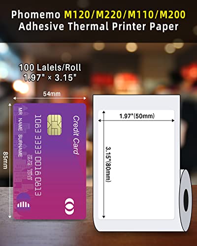 Phomemo Etichette per stampante M120 M110 M200 Label Maker, etichetta autoadesiva quadrata multiuso, 50 x 80 mm, 100 etichette