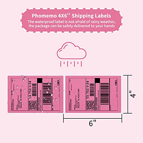 Phomemo Etichette termiche rosa 4x6, etichette di spedizione, etichette di imballaggio, compatibili con MUNBYN Rollo e tutte le stampanti per etichette 4x6 (500 etichette pieghevoli rosa)