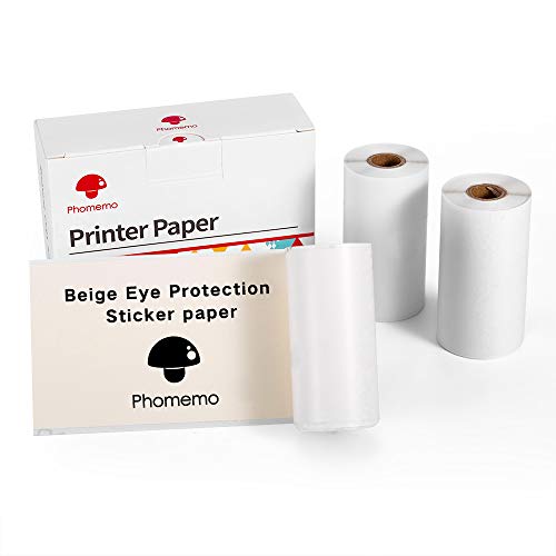 Phomemo Protezione per Gli Occhi Carta Termica Beige per Phomemo M02, M02PRO, M02S, M03, M03AS, M04S, M04AS Stampante Bluetooth Portatile, 53 mm x 3 m, 30 mm di Diametro, 3 Rotoli