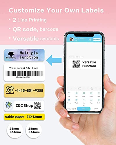 Design per l'home office: supporta la stampa di etichette da 6 a 15 mm. Le macchine per la stampa di etichette Phomemo D30 sono ampiamente utilizzate per l'organizzazione di articoli per la casa, la classificazione di articoli cosmetici, il monitoraggio di fatture di documenti, etichette di gioielli prezzo, adesivi in 窶銀久etro, etichette trasparenti/trasparenti, etichettatura, conservazione, marcatura, ecc.