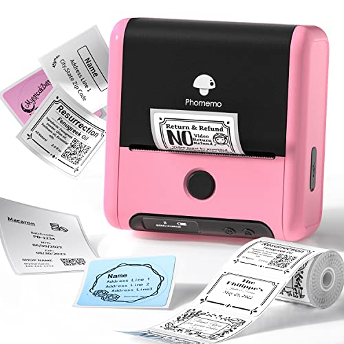 Phomemo M200 Stampante per etichette- Stampante etichette termica Bluetooth 3 pollici 80 mm,Etichettatrice Bluetooth Stampa etichette trasparenti,Adatto per ufficio,Negozio,codice a barre -Rosa