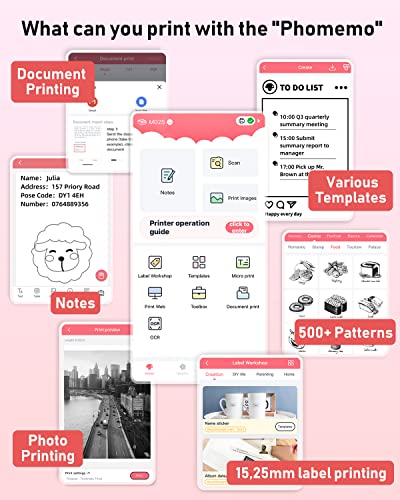 [Compatibile con tre formati di carta] - Con un supporto per carta regolabile, questa stampante fotografica può stampare 3 tipi di carta: 53 mm, 25 mm e 15 mm. Non solo può stampare testo o immagini, ma può anche utilizzare M02S come stampante per etichette per uso domestico.