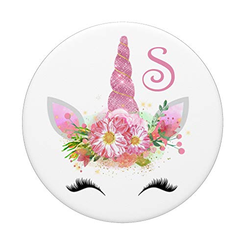 Cell Phone Holder Pop Up Handle,Cute Unicorn Pink Initial S PopSockets PopGrip: Impugnatura per Telefoni Cellulari e Tablet Intercambiabile