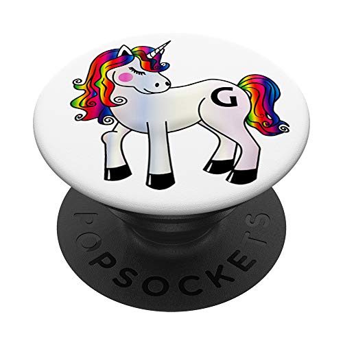 Cell Phone Pop Up Holder,Rainbow Unicorn Initial Letter G PopSockets PopGrip: Impugnatura per Telefoni Cellulari e Tablet Intercambiabile