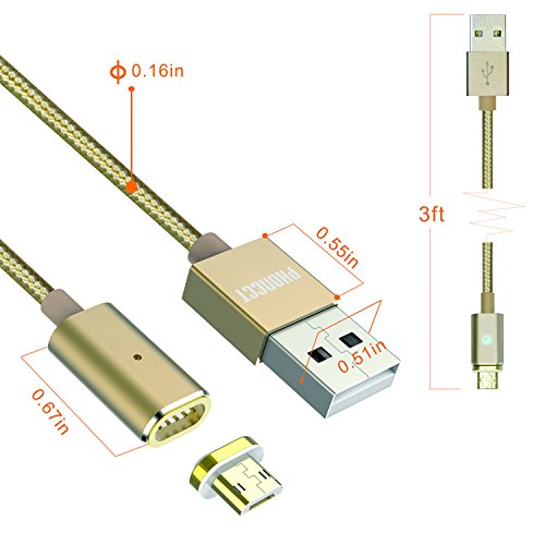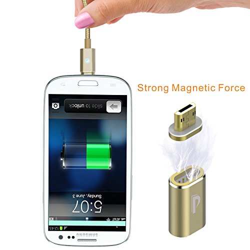 PHONECT magnetica cavo di ricarica USB cavo di dati nylon intrecciato USB con porta magnetico Micro USB Adapter (3.9ft / 1.2m) - A a Micro B AD ALTA VELOCITA 'di carica e cavo di sincronizzazione per il bordo della galassia di Samsung S6 S5 mini S4 cavo USB compatibile con Nokia BLACKBERRY CURVE BOLD HTC DESIRE SONY ERICSSON LG tutti i telefoni Android Tablet e giochi con slot USB MICRO-Dorato