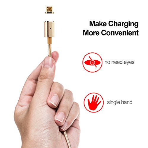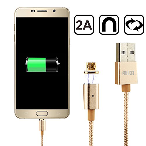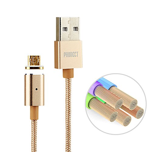 PHONECT 1.2m Magnetica Cavo di Ricarica USB Nylon Intrecciato Cavo Dati USB di Ricarica Rapida Core con Indicatore di Stato a LED e Adattatore USB Micro Magnetico Porta per Smartphone Android-Oro