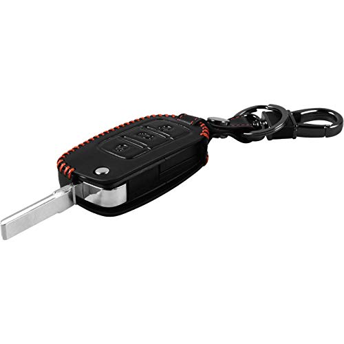 PhoneNatic Cover in Vera Pelle Stitched Chiavi per Telecomando a 3 Tasti VW Polo Nero Chiave a Scatto a 3-Key