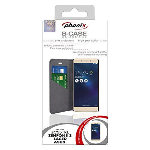 Phonix ASZ3LBCB Custodia a Libro in finta pelle per ASUS ZenFone 3 Laser 5.5" ZC551KL, Nero