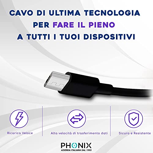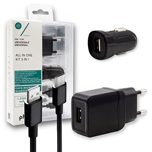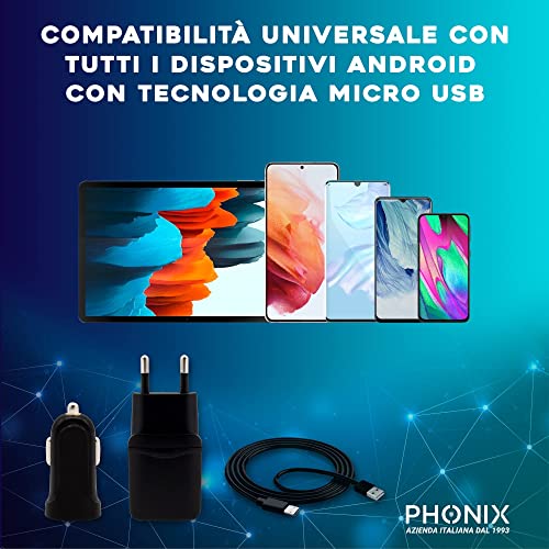 PHONIX [3 in 1] Caricatore per Samsung Huawei Xiaomi Oppo + Cavo USB MicroUSB da 1 mt + Caricatore Auto USB Universale con Presa Accendisigari | GARANZIA ITALIANA