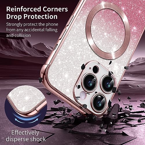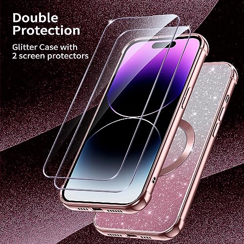Phoona Cover Magnetica per iPhone 14 Pro Max, Glitter Custodia Compatibile con MagSafe, Anti Graffi, Non Ingiallente, Protezione Completa Case iPhone 14 Pro Max, con 2 Vetro Temperato, Rosa
