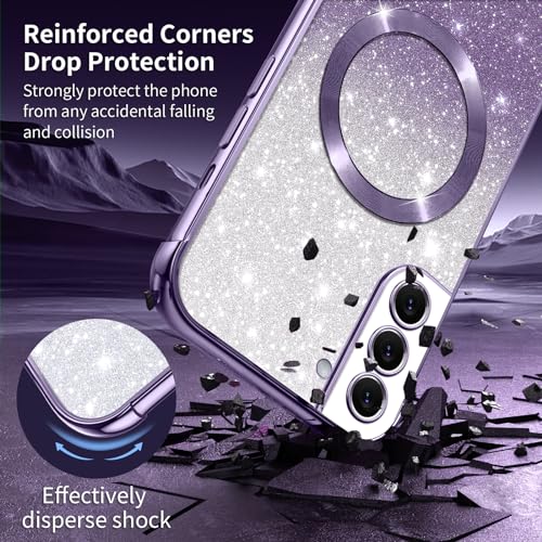 Phoona Cover Magnetica per Samsung Galaxy S21 FE, Glitter Custodia Compatibile con MagSafe, Anti Graffi, Non Ingiallente, Protezione Completa Case Samsung S21 FE 5G, con 2 Vetro Temperato, Viola