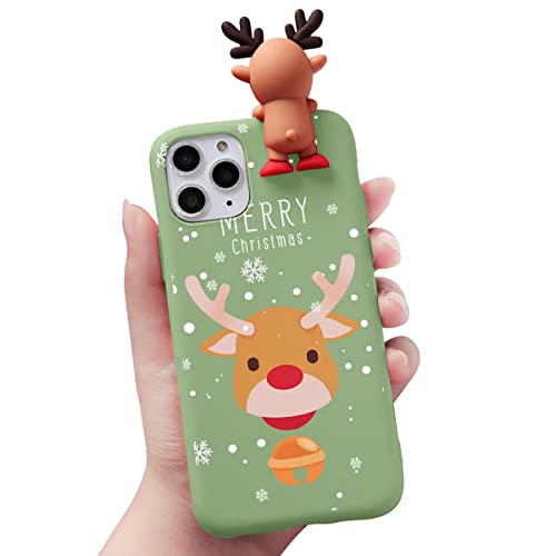 Phoona Natale Cover per Apple iPhone 13 Pro 6,1", Custodia in Silicone Verde Matte con Natalizia Cervo 3D Modello Disegni Case Protettiva, Ultra Sottile Morbido TPU Antiurto per iPhone 13 Pro
