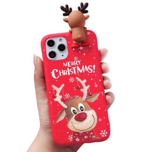 Phoona Natale Cover per OnePlus Nord 2 5G 6,43", Custodia in Silicone Rosso Matte con Natalizia Cervo 3D Modello Disegni Case Protettiva, Ultra Sottile Morbido TPU Antiurto per OnePlus Nord 2 5G