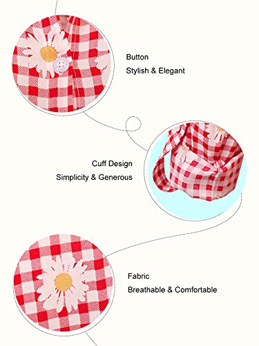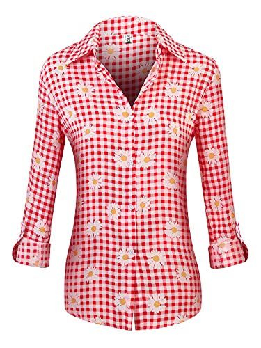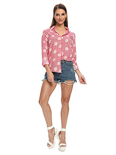 Phorecys - Camicia da donna con scollo a V, a righe, con bottoni e maniche a quadretti, taglia XS-XXL Rosso D M