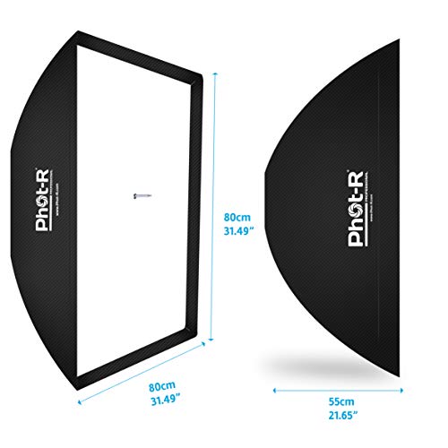 Phot-R, ombrello fotografico professionale, 80 x 120 cm, rettangolare e pieghevole, softbox con attacco Bowens, supporto tipo S, adattatore Sppedring, colore: nero