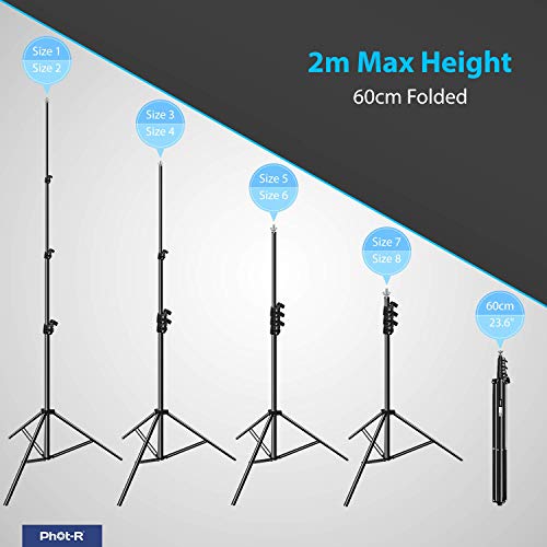 Phot-R - Sistema di supporto per lo sfondo da studio, 2 x 3 m, 2 supporti da 2 m e 3 m con barra trasversale regolabile, kit di custodia per carta mussola di cotone, vinile non tessuto