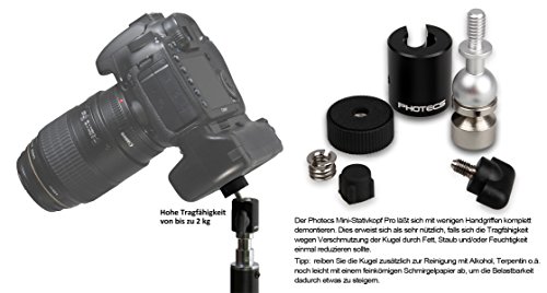 Photecs Mini treppiede testa Pro, CNC gefertigter testa a sfera con nucleo in acciaio (Tripod Mini Ball Head) con 3/8" di collegamento, incluso adattatore filettato 3/8" a 1/4, montato girevole a 360 °