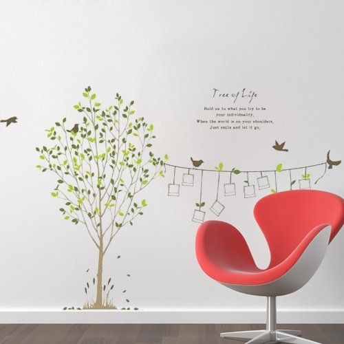 Photo Frame foglie d'albero Uccello smontabile Camera dei bambini Art Mural Sticker Adesivo