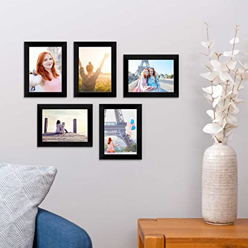 PHOTOLINI Set di 5 cornici per Foto da 10x15 cm Basic Collection Modern Nero in MDF Accessori Inclusi/Collage Foto/Galleria Fotografica