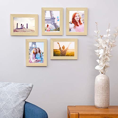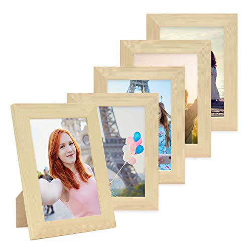 PHOTOLINI Set di 5 cornici per foto da 10x15 cm, moderne, pino, in legno massicio, Basic Collection, accessori inclusi / Collage foto / Galleria fotografica