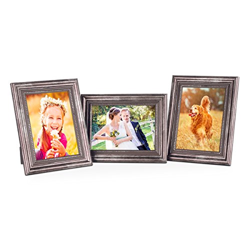 PHOTOLINI Set da 3 cornici per foto da 15x20 cm argento barocco antico in legno massiccio con lastra in vetro e accessori/cornici barocche
