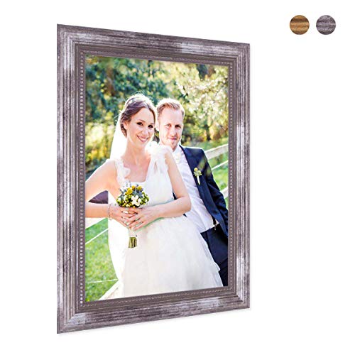 PHOTOLINI Set di 2 cornici per foto da 21x30 cm/DIN A4 argento barocco antico in legno massiccio con lastra in vetro e accessori/portafoto/cornici barocche