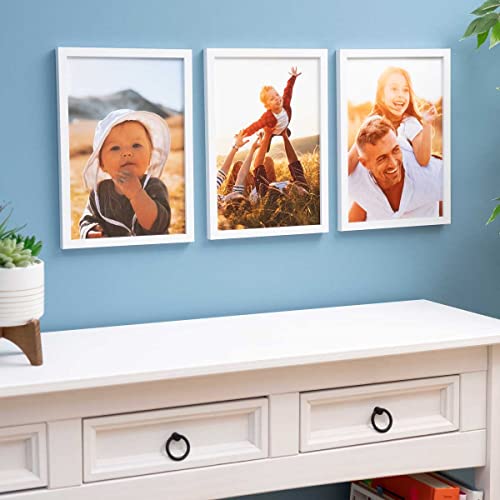 Photolini Set di 3 cornici per Foto da 21x30 cm/DIN A4 Modern Bianco in MDF con Vetro Acrilico, Accessori Inclusi/Collage Foto/Galleria Fotografica